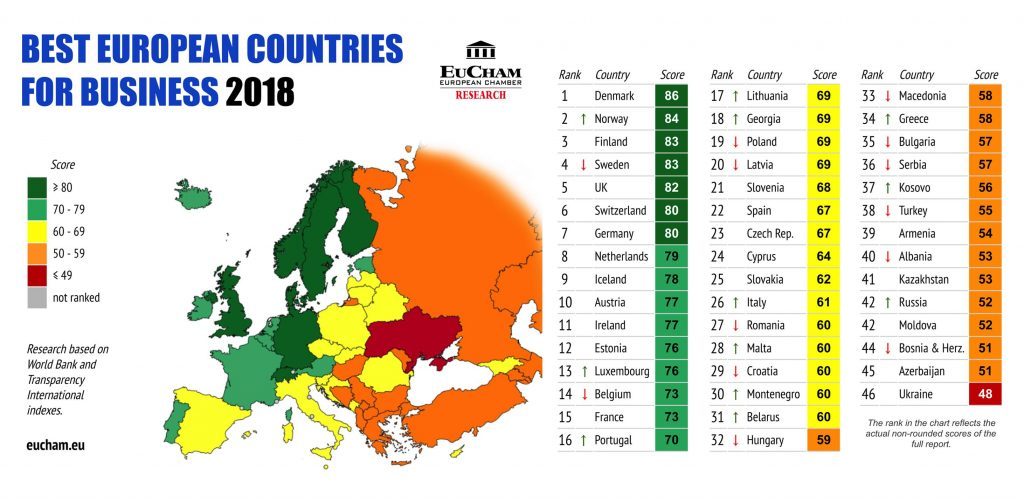 The European Chamber ranks European countries based on their business environment. The EuCham score is reflected on a scale from 0 to 100, where 0 represents the lowest performance and 100 represents the best. The EuCham score measures the overall business context constituted by corporate environment, legislation, government policies, social climate and conditions which enable […]